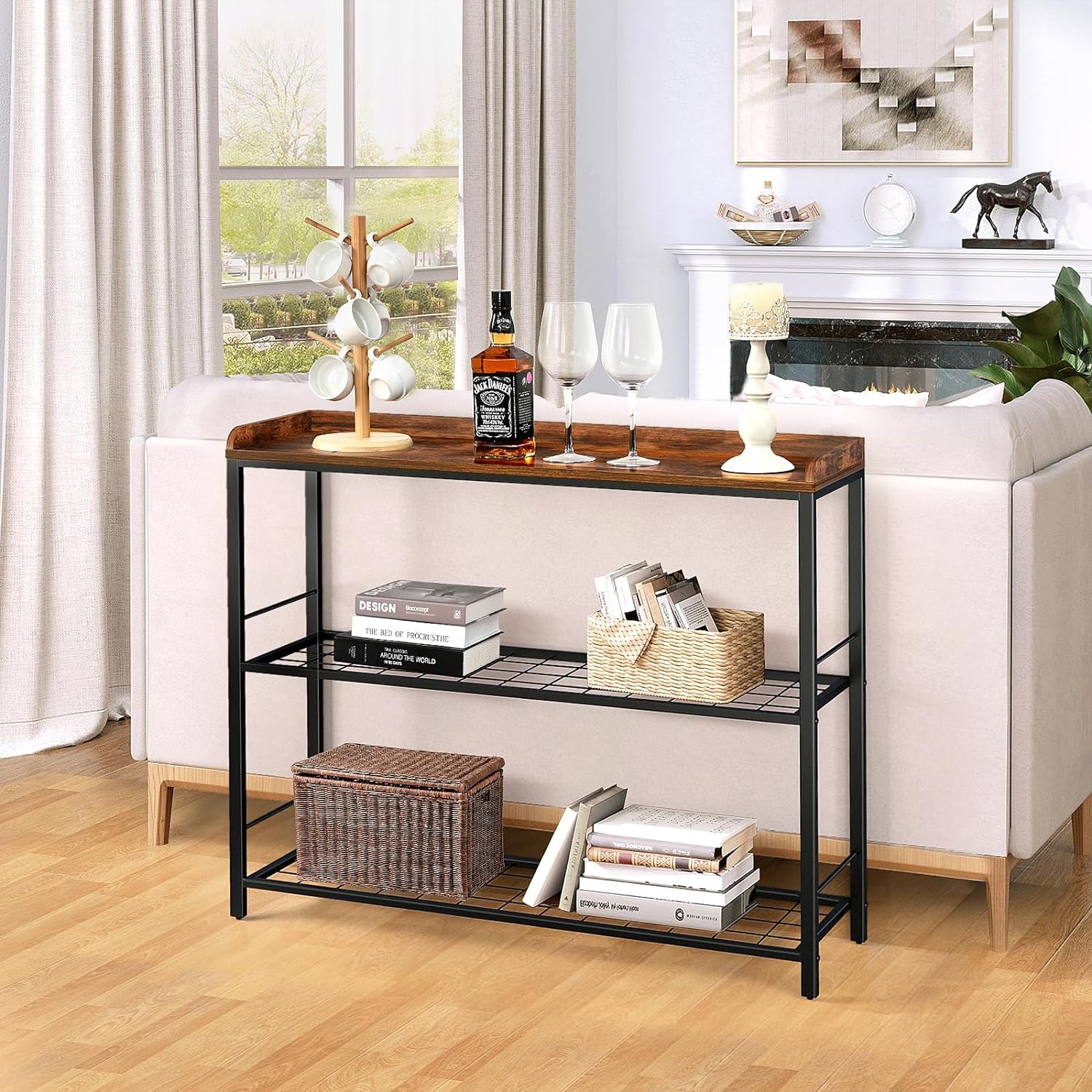 Livofloral Narrow Console Table, Behind Couch Table, 39.4 Inch Sofa Table, 3-Tier Entryway Table, Small Console Tables for Entryway, Foyer, Living Room Table, Entry Table, Rustic Brown