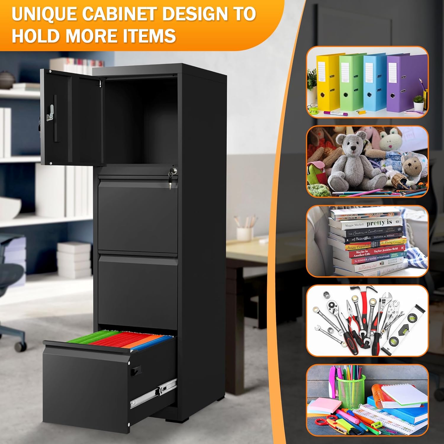 Livofloral 4 Drawer Metal File Cabinet with Cabinet on Top for Home Office Storage